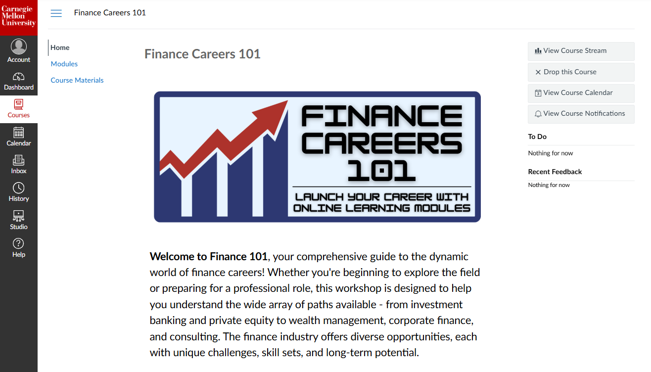 We are honored and thrilled to announce that the Financial Analyst Student Training (FAST) team has worked alongside the Carnegie Mellon University - CPDC to create and introduce Carnegie Mellon University students to the brand new Canvas course "Finance Careers 101". The course is designed to demystify the finance world and empower students with actionable career insights.